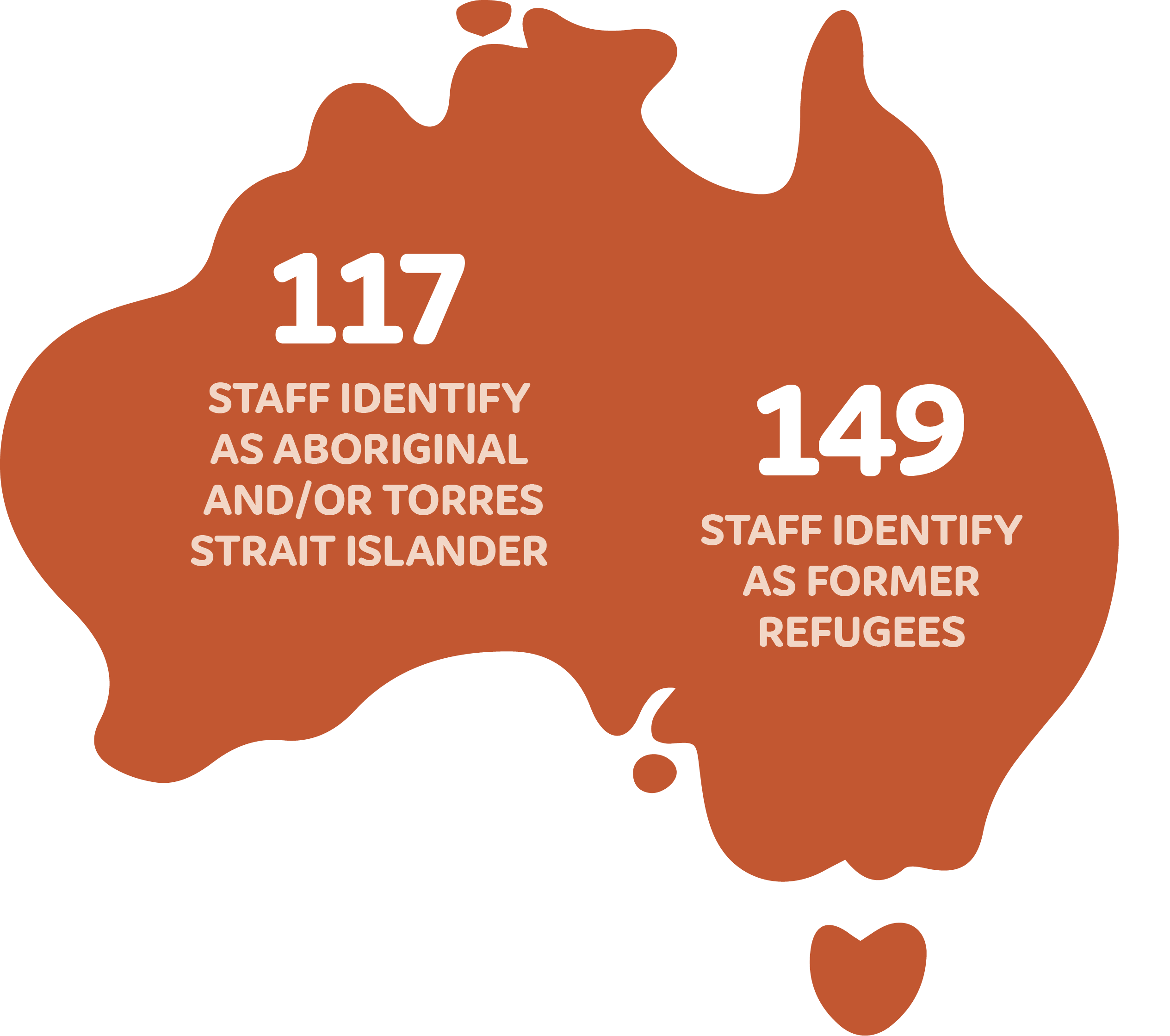 *822 people given employment opportunities, 138 employed with third-party employers through our Work Readiness & Employment Programs. **Non-binary or non-identified staff. ***Young people defined as under the age of 25.