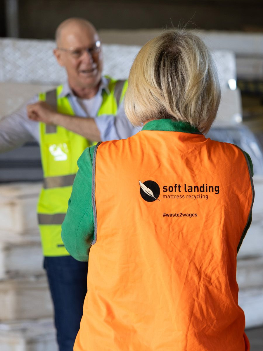 In the last 12 months alone, the work required to collect, dismantle and recycle mattresses has created more than 23,000 days of work for 291 people. Approximately 75% of our team experienced barriers to work before joining us – that’s 218 people who may otherwise have been locked out of the workforce who have gained steady, meaningful employment.